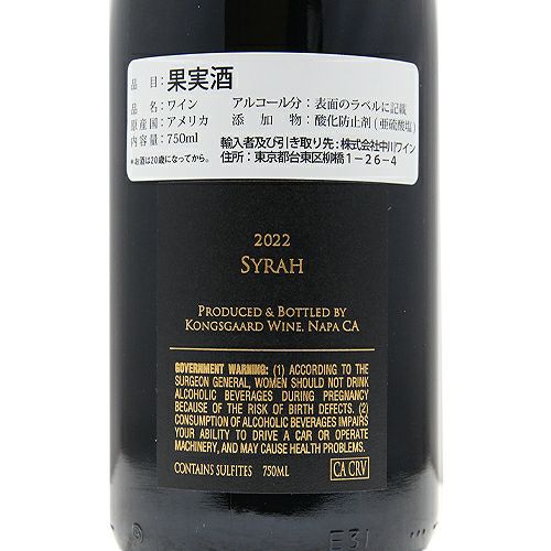 他の画像を見る 【ロバート・パーカー太鼓判のシラー!】 コングスガード シラー ナパヴァレー 2022 赤ワイン 定価 ¥ 52,800 のところ 価格 ¥ 46,090 税込 会員特別価格 ¥ 46,090 税込 カートに入れる お気に入りに登録する