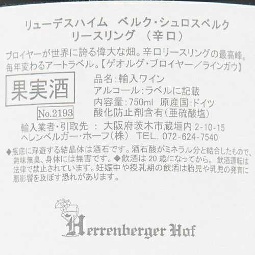 他の画像を見る 【毎年変わるアートラベル、コレクションしたい♪】 ベルク シュロスベルク リースリング 2019 ゲオルク ブロイヤー 白ワイン 定価 ¥ 20,900 のところ 価格 ¥ 16,500 税込 会員特別価格 ¥ 16,500 税込 在庫切れ ゲオルク リューデスハイム アートラベル 詳細を見る お気に入りに登録する