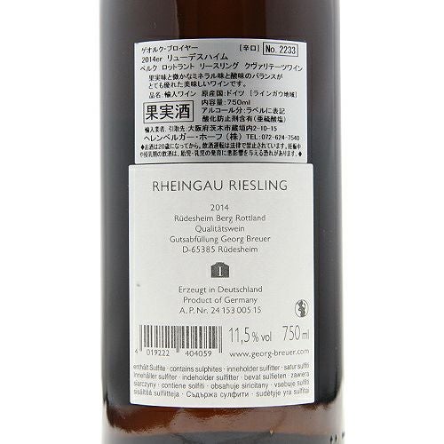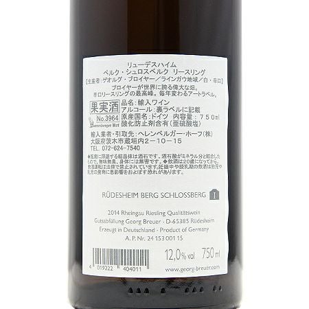 他の画像を見る 【パーカーポイント94点】 ゲオルク ブロイヤー ベルク シュロスベルク リースリング 2014 白ワイン 定価 ¥ 36,300 のところ 価格 ¥ 33,000 税込 会員特別価格 ¥ 33,000 税込 在庫切れ ゲオルグ シュロスベルグ 詳細を見る お気に入りに登録する
