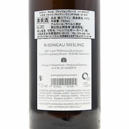 他の画像を見る 【この生産者から目が離せない!】 ゲオルク ブロイヤー ロルヒ ファッフェンヴィース リースリング 2021 白ワイン 定価 ¥ 23,100 のところ 価格 ¥ 19,800 税込 会員特別価格 ¥ 19,800 税込 在庫切れ 詳細を見る お気に入りに登録する