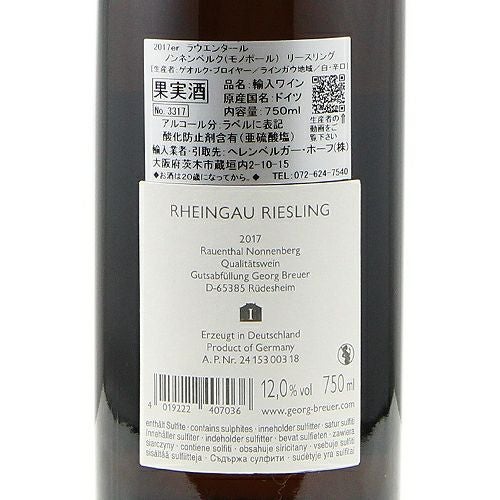 他の画像を見る 【パーカーポイント93+点】 ラウネンタール ノンネンベルク リースリング 2017 ゲオルク ブロイヤー 白ワイン 定価 ¥ 33,000 のところ 価格 ¥ 29,150 税込 会員特別価格 ¥ 29,150 税込 カートに入れる お気に入りに登録する