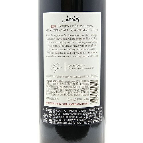他の画像を見る 【全米のレストランが愛するカベルネソーヴィニヨン】 ジョーダン カベルネ ソーヴィニヨン アレキサンダー ヴァレー 2019 赤ワイン 定価 ¥ 15,400 のところ 価格 ¥ 13,200 税込 会員特別価格 ¥ 13,200 税込 カートに入れる お気に入りに登録する