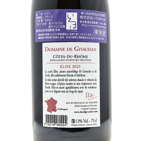 他の画像を見る 【レストランで重宝されそうな"キレイ系ローヌ"】 コート デュ ローヌ エリーズ 2022 ジヴォーダン 赤ワイン 定価 ¥ 3,080 のところ 価格 ¥ 2,640 税込 会員特別価格 ¥ 2,640 税込 在庫切れ 詳細を見る お気に入りに登録する