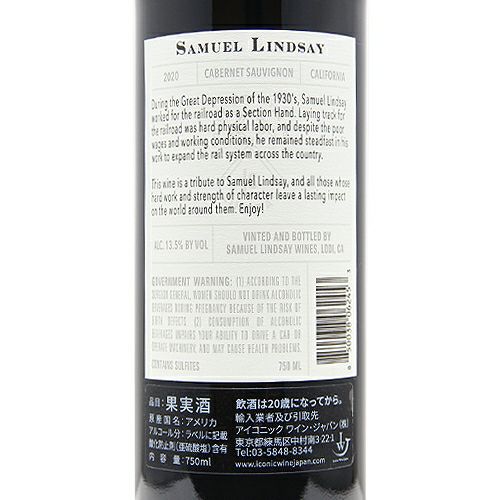 他の画像を見る 【希少になってしまったこの価格帯、すばらしい!】 サミュエル リンゼイ カベルネ ソーヴィニヨン 2020 赤ワイン 定価 ¥ 2,090 のところ 価格 ¥ 1,672 税込 会員特別価格 ¥ 1,672 税込 カートに入れる お気に入りに登録する