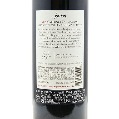 他の画像を見る 【全米のレストランが愛するカベルネソーヴィニヨン】 ジョーダン カベルネ ソーヴィニヨン アレキサンダー ヴァレー 2019 赤ワイン 定価 ¥ 15,400 のところ 価格 ¥ 13,200 税込 会員特別価格 ¥ 13,200 税込 カートに入れる お気に入りに登録する