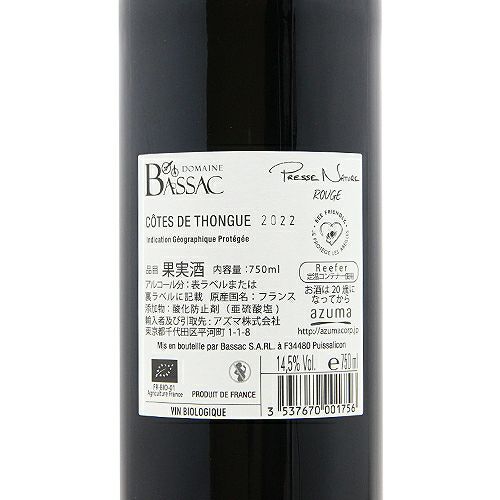 他の画像を見る 【搾った果汁そのままの味わいがグラスに!】 プレス ナチュール ルージュ 2023 ドメーヌ バサック 赤ワイン 定価 ¥ 2,970 のところ 価格 ¥ 2,552 税込 会員特別価格 ¥ 2,552 税込 カートに入れる お気に入りに登録する