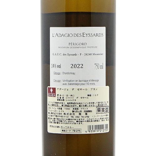 他の画像を見る 【生産者いわく「俺たちのシャブリ!」だけど・・・】 アダージョ デ ゼサール ブラン 2023 白ワイン 定価 ¥ 2,970 のところ 価格 ¥ 2,475 税込 会員特別価格 ¥ 2,475 税込 カートに入れる お気に入りに登録する