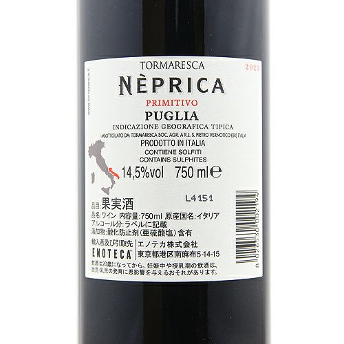 他の画像を見る 【プーリアの果実感を気軽に】 トルマレスカ ネプリカ プリミティーヴォ 2024 赤ワイン 定価 ¥ 1,870 のところ 価格 ¥ 1,617 税込 会員特別価格 ¥ 1,617 税込 カートに入れる お気に入りに登録する