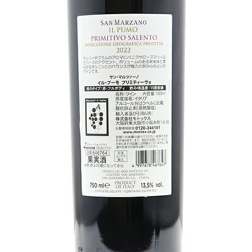 他の画像を見る 【レストランで重宝されるスムースさ!】 イル プーモ プリミティーヴォ 2023 サン マルツァーノ 赤ワイン 定価 ¥ 1,485 のところ 価格 ¥ 1,177 税込 会員特別価格 ¥ 1,177 税込 カートに入れる お気に入りに登録する