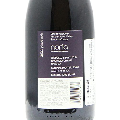 他の画像を見る 【抽出を抑えてソフトな仕上がり】 ノリア ピノ ノワール ウミノ ヴィンヤード ラシアン リヴァー ヴァレー 2021 ナカムラ セラーズ 赤ワイン 定価 ¥ 9,900 のところ 価格 ¥ 7,920 税込 会員特別価格 ¥ 7,920 税込 カートに入れる お気に入りに登録する