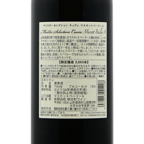 他の画像を見る 【いい意味で"らしくない"】 朝日町ワイン マイスター セレクション キュヴェ マスカット ベーリーA 2021 赤ワイン 定価 ¥ 0 のところ 価格 ¥ 4,125 税込 会員特別価格 ¥ 4,125 税込 カートに入れる お気に入りに登録する