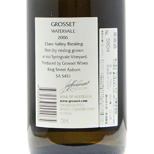 他の画像を見る 【パーカーポイント90点】 グロセット ウォーターヴェイル リースリング 2006 白ワイン 定価 ¥ 9,900 のところ 価格 ¥ 8,602 税込 会員特別価格 ¥ 8,602 税込 カートに入れる お気に入りに登録する