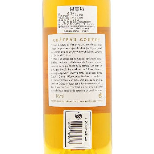 他の画像を見る 【パーカーポイント93点!】 シャトー クーテ 2006 白ワイン 定価 オープン価格 のところ 価格 ¥ 9,537 税込 会員特別価格 ¥ 9,537 税込 在庫切れ 詳細を見る お気に入りに登録する