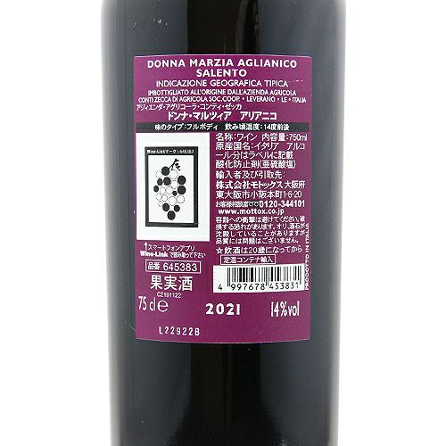 他の画像を見る 【地ブドウで飲み応え抜群の赤ワイン】 ドンナ マルツィア アリアニコ 2023 アジィエンダ アグリコーラ コンティ ゼッカ 赤ワイン 定価 ¥ 1,650 のところ 価格 ¥ 1,320 税込 会員特別価格 ¥ 1,320 税込 在庫切れ 安くて美味い コスパワイン コスパ最強 お買い得 旨安ワイン 安旨 コストパフォーマンスが高い デイリーワイン 家飲みワイン 宅飲みワイン 詳細を見る お気に入りに登録する