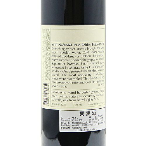 他の画像を見る 【樹齢90年のジンファンデル】 リッジ ヴィンヤーズ ジンファンデル パソ ロブレス 2019 赤ワイン 定価 ¥ 7,920 のところ 価格 ¥ 7,150 税込 会員特別価格 ¥ 7,150 税込 カートに入れる お気に入りに登録する