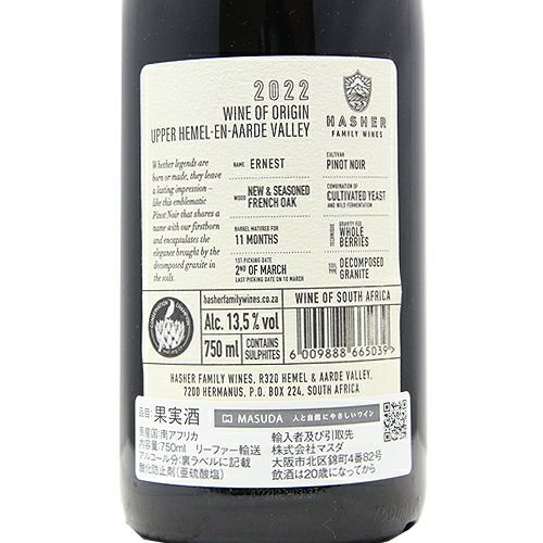 他の画像を見る 【自然に、ピュアに、ワールドクラス】 ハッシャー アーネスト ピノ ノワール 2022 赤ワイン 定価 ¥ 8,250 のところ 価格 ¥ 6,996 税込 会員特別価格 ¥ 6,996 税込 カートに入れる お気に入りに登録する