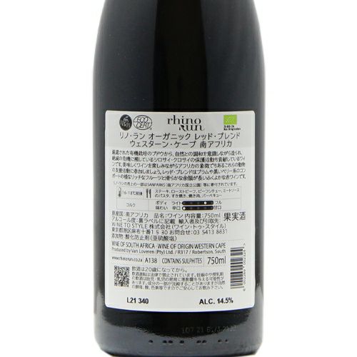 他の画像を見る 【優等生な味わいで期待以上!】 ライノ ラン オーガニック レッド ブレンド 2020 赤ワイン 定価 ¥ 1,925 のところ 価格 ¥ 1,628 税込 会員特別価格 ¥ 1,628 税込 カートに入れる お気に入りに登録する