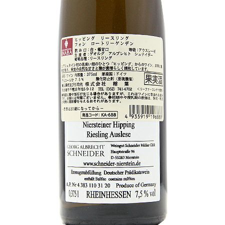 他の画像を見る 【リースリングのデザートワインでこの価格は驚き!】 ニーアシュタイナー ヒッピング リースリング アウスレーゼ 2023 ゲオルグ アルブレヒト シュナイダー 白ワイン 定価 ¥ 2,750 のところ 価格 ¥ 2,299 税込 会員特別価格 ¥ 2,299 税込 カートに入れる お気に入りに登録する