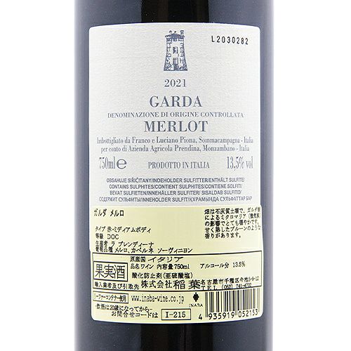 他の画像を見る 【丸い味わい「おしとやか」メルロー】 ガルダ メルロ 2022 ラ プレンディーナ 赤ワイン 定価 ¥ 2,420 のところ 価格 ¥ 2,024 税込 会員特別価格 ¥ 2,024 税込 カートに入れる お気に入りに登録する