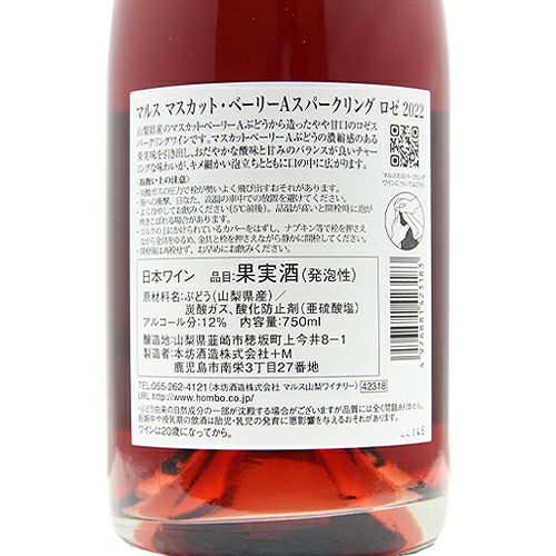 他の画像を見る 【香りも味もチャーミング!】 マルス マスカット ベーリー A スパークリング ロゼ 2022 スパークリング 定価 ¥ 2,530 のところ 価格 ¥ 2,530 税込 会員特別価格 ¥ 2,530 税込 カートに入れる お気に入りに登録する