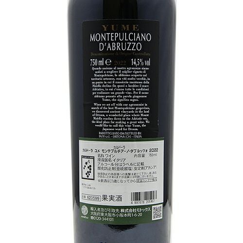 他の画像を見る 【古木の単一畑から生まれる】 YUME モンテプルチアーノ ダブルッツォ 2022 カルドーラ 赤ワイン 定価 ¥ 3,575 のところ 価格 ¥ 3,014 税込 会員特別価格 ¥ 3,014 税込 カートに入れる お気に入りに登録する