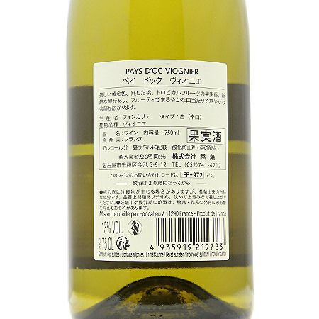 他の画像を見る 【良い香りのワインで思わず笑顔に】 ペイ ドック レ フォンタネル ヴィオニエ 2023 or 2024 レ ヴィニョーブル フォンカリュ 白ワイン 定価 ¥ 1,760 のところ 価格 ¥ 1,474 税込 会員特別価格 ¥ 1,474 税込 カートに入れる お気に入りに登録する