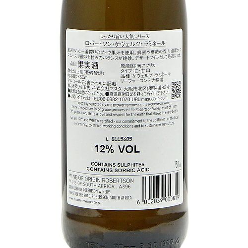 他の画像を見る 【甘い香りにうっとり♪試飲会の大人気ワイン!】 ロバートソン ゲヴュルツトラミネール 2024 白ワイン 定価 ¥ 1,430 のところ 価格 ¥ 1,430 税込 会員特別価格 ¥ 1,430 税込 カートに入れる お気に入りに登録する