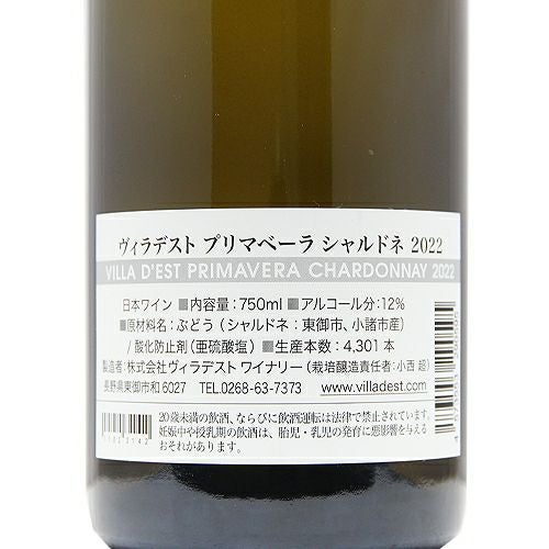 他の画像を見る 【ブドウ畑を思い浮かべて飲みたい】 ヴィラデスト ワイナリー プリマベーラ シャルドネ 2022 白ワイン 定価 ¥ 0 のところ 価格 ¥ 4,202 税込 会員特別価格 ¥ 4,202 税込 カートに入れる お気に入りに登録する
