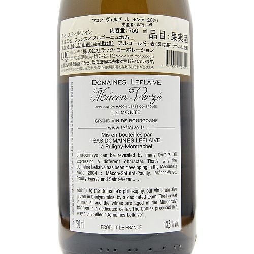 他の画像を見る 【ルフレーヴの単一畑がこの価格で!】 マコン ヴェルゼ ル モンテ 2020 ドメーヌ ルフレーヴ 白ワイン 定価 ¥ 0 のところ 価格 ¥ 6,237 税込 会員特別価格 ¥ 6,237 税込 在庫切れ 詳細を見る お気に入りに登録する