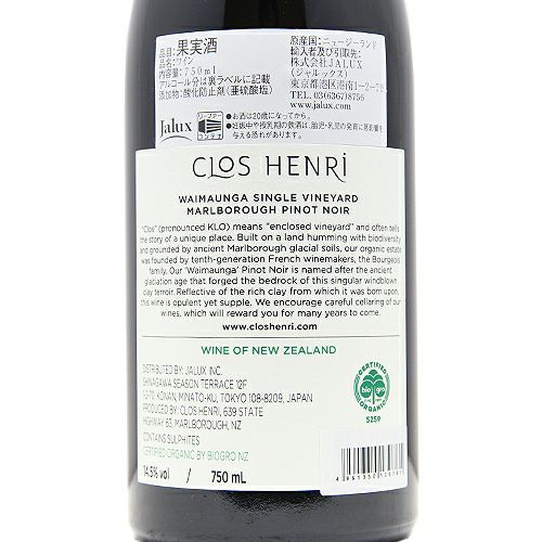 他の画像を見る 【オーガニック農法によるブドウパワーを】 クロ アンリ ワイマウンガ ピノ ノワール 2020 赤ワイン 定価 ¥ 6,820 のところ 価格 ¥ 5,214 税込 会員特別価格 ¥ 5,214 税込 カートに入れる お気に入りに登録する