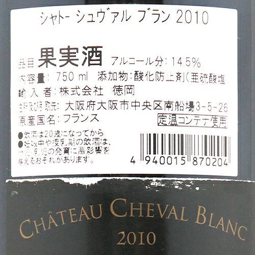 他の画像を見る 【パーカーポイント100点!】 シャトー シュヴァル ブラン 2010 赤ワイン 価格 ¥ 152,900 税込 会員特別価格 ¥ 152,900 税込 在庫切れ プルミエール グラン クリュ クラッセ シャトー A シュバル 詳細を見る お気に入りに登録する