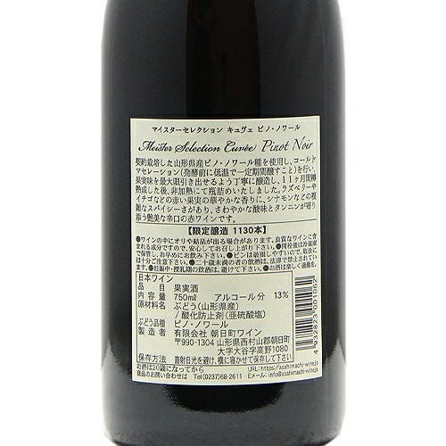 他の画像を見る 【日本のピノ・ノワールでこの価格は安い!】 マイスター セレクション キュヴェ ピノ ノワール 2022 朝日町ワイン 赤ワイン 定価 ¥ 3,862 のところ 価格 ¥ 4,345 税込 会員特別価格 ¥ 4,345 税込 カートに入れる お気に入りに登録する