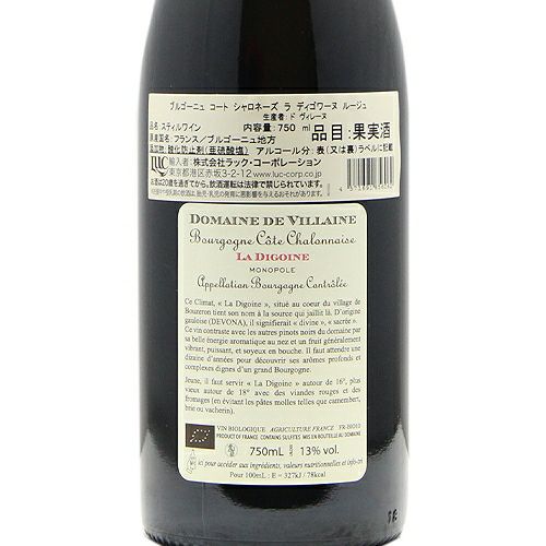 他の画像を見る 【「アペラシオンのレベルを超越している」】 ブルゴーニュ コート シャロネーズ ラ ディゴワーヌ ルージュ 2023 ドメーヌ ド ヴィレーヌ 赤ワイン 定価 ¥ 0 のところ 価格 ¥ 8,602 税込 会員特別価格 ¥ 8,602 税込 カートに入れる お気に入りに登録する