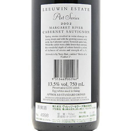 他の画像を見る 【毎年デザインが変わってコレクションしたくなる!】 ルーウィン エステート アートシリーズ カベルネ ソーヴィニヨン 2002 赤ワイン 定価 ¥ 16,830 のところ 価格 ¥ 14,630 税込 会員特別価格 ¥ 14,630 税込 カートに入れる お気に入りに登録する
