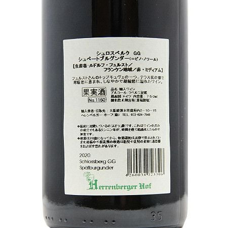 他の画像を見る 【急斜面のテラスの畑、だから上質!】 フュルスト シュロスベルク シュペートブルグンダー GG 2020 赤ワイン 定価 ¥ 38,500 のところ 価格 ¥ 33,880 税込 会員特別価格 ¥ 33,880 税込 グローセス ゲヴェックス Grosses Gewachus 特急畑 カートに入れる お気に入りに登録する