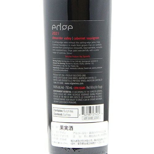 他の画像を見る 【いつでもどこでも何とでも美味しい】 エッジ カベルネ ソーヴィニヨン アレキサンダー ヴァレー 2022 赤ワイン 定価 ¥ 6,050 のところ 価格 ¥ 4,840 税込 会員特別価格 ¥ 4,840 税込 カートに入れる お気に入りに登録する