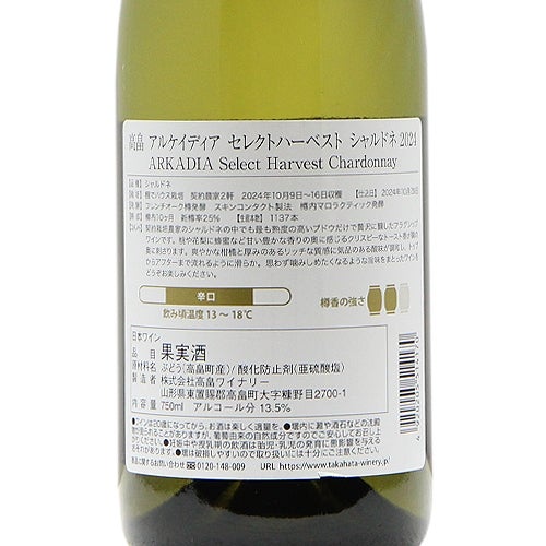 他の画像を見る 【ワールドクラスの凝縮感】 高畠 アルケイディア セレクトハーベスト シャルドネ 2024 高畠ワイナリー 白ワイン 定価 ¥ 0 のところ 価格 ¥ 7,447 税込 会員特別価格 ¥ 7,447 税込 カートに入れる お気に入りに登録する