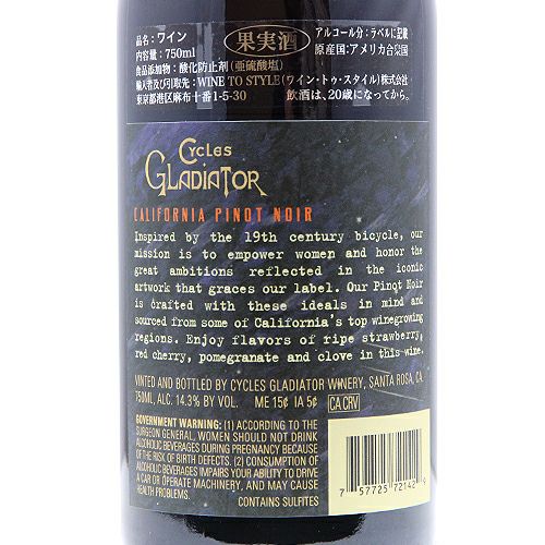 他の画像を見る 【コスパ ピノ・ノワールの定番銘柄】 サイクルズ グラディエーター ピノ ノワール カリフォルニア 2023 赤ワイン 定価 ¥ 2,420 のところ 価格 ¥ 1,760 税込 会員特別価格 ¥ 1,760 税込 カートに入れる お気に入りに登録する
