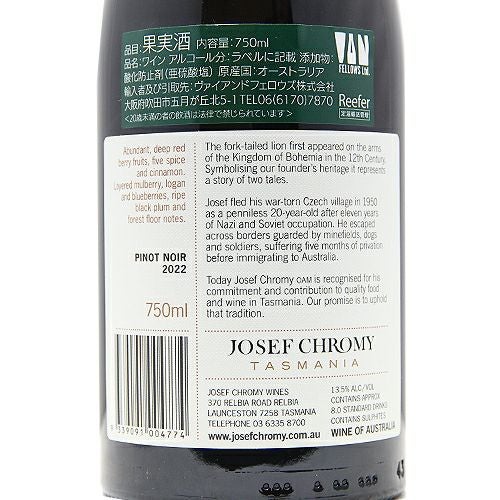 他の画像を見る 【現地レストランで最も多くオンリスト!】 ジョセフ クローミー ピノ ノワール 2022 赤ワイン 定価 ¥ 4,950 のところ 価格 ¥ 4,125 税込 会員特別価格 ¥ 4,125 税込 カートに入れる お気に入りに登録する