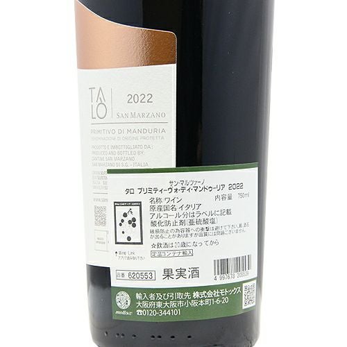 他の画像を見る 【甘濃くなめらか、こりゃ好かれる味だ!】 タロ プリミティーヴォ ディ マンドゥーリア 2022 サン マルツァーノ 赤ワイン 定価 ¥ 2,200 のところ 価格 ¥ 1,760 税込 会員特別価格 ¥ 1,760 税込 フルボディ 重口 Full Body 飲みごたえあり ヘビー 濃厚 安くて美味い コスパワイン コスパ最強 お買い得 旨安ワイン 安旨 コストパフォーマンスが高い カートに入れる お気に入りに登録する