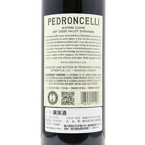 他の画像を見る 【「毎日飲みたいワイン」の信頼を目指して】 ペドロンチェリ ジンファンデル マザー クローン 2022 赤ワイン 定価 ¥ 3,740 のところ 価格 ¥ 2,992 税込 会員特別価格 ¥ 2,992 税込 カートに入れる お気に入りに登録する
