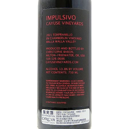 他の画像を見る 【「まさに北米で最高のものの一つ」】 カユース インパルシーヴォ 2021 赤ワイン 定価 ¥ 0 のところ 価格 ¥ 26,290 税込 会員特別価格 ¥ 26,290 税込 在庫切れ 詳細を見る お気に入りに登録する