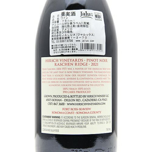 他の画像を見る 【全米No.1ワインに選出!】 ハーシュ ヴィンヤーズ ラッシェン リッジ ピノノワール 2021 赤ワイン 定価 ¥ 0 のところ 価格 ¥ 26,400 税込 会員特別価格 ¥ 26,400 税込 在庫切れ 詳細を見る お気に入りに登録する