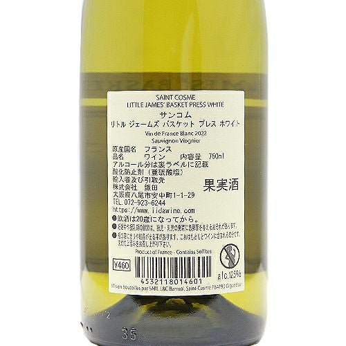 他の画像を見る 【フルーツ×フルーツ=超フルーティ!】 リトルジェームス バスケットプレス ホワイト 2023 サン コム 白ワイン 定価 ¥ 2,420 のところ 価格 ¥ 2,112 税込 会員特別価格 ¥ 2,112 税込 子供のイラスト リトルジェームズ カートに入れる お気に入りに登録する
