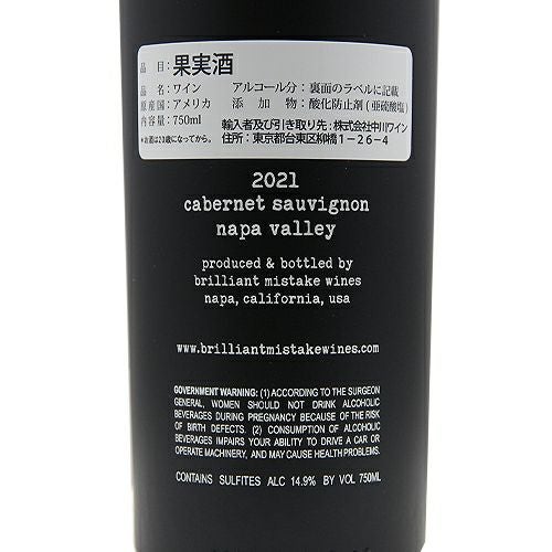他の画像を見る 【パーカーポイント93点】 ブリリアント ミステイク カベルネ ソーヴィニヨン ナパ ヴァレー 2021 赤ワイン 定価 ¥ 38,500 のところ 価格 ¥ 33,000 税込 会員特別価格 ¥ 33,000 税込 カートに入れる お気に入りに登録する