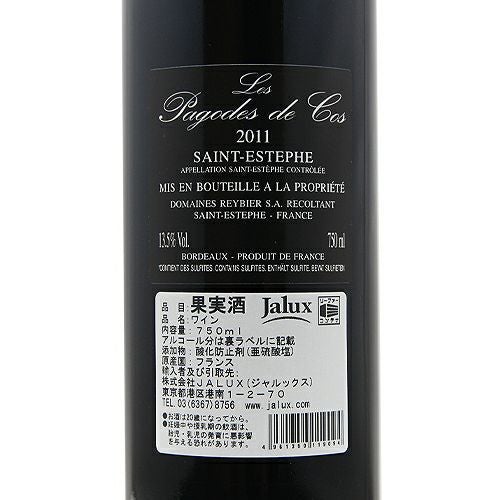 他の画像を見る 【パーカーポイント88点】 レ パゴド ド コス 2011 赤ワイン 定価 ¥ 0 のところ 価格 ¥ 8,800 税込 会員特別価格 ¥ 8,800 税込 カートに入れる お気に入りに登録する