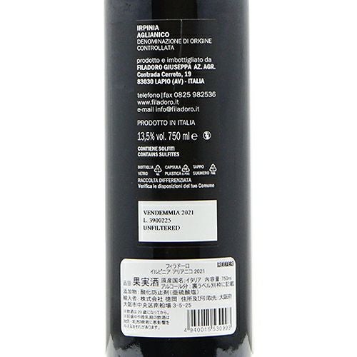 他の画像を見る 【目の行き届いた丁寧な仕事!】 フィラドーロ イルピニア アリアニコ 2021 赤ワイン 定価 ¥ 3,080 のところ 価格 ¥ 2,332 税込 会員特別価格 ¥ 2,332 税込 カートに入れる お気に入りに登録する