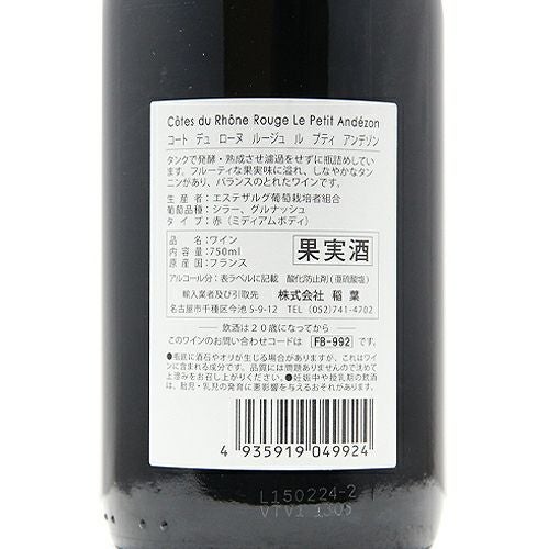 他の画像を見る 【雄牛のエチケットどおりのパワフルさ】 コート デュ ローヌ ルージュ ル プティ アンデゾン 2023 エステザルグ葡萄栽培者組合 赤ワイン 定価 ¥ 0 のところ 価格 ¥ 1,507 税込 会員特別価格 ¥ 1,507 税込 カートに入れる お気に入りに登録する