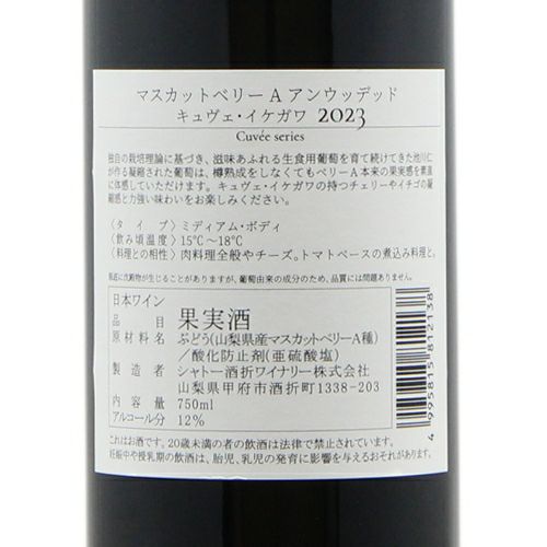 他の画像を見る 【世界基準の高品質】 マスカット ベーリーA キュヴェ イケガワ アンウッデッド 2023 シャトー 酒折 赤ワイン 定価 ¥ 2,860 のところ 価格 ¥ 2,662 税込 会員特別価格 ¥ 2,662 税込 カートに入れる お気に入りに登録する