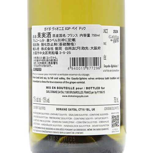 他の画像を見る 【4人で目指した将来へのワインづくり】 ガイダ スフェール ヴィオニエ 2024 白ワイン 定価 ¥ 2,200 のところ 価格 ¥ 1,694 税込 会員特別価格 ¥ 1,694 税込 カートに入れる お気に入りに登録する